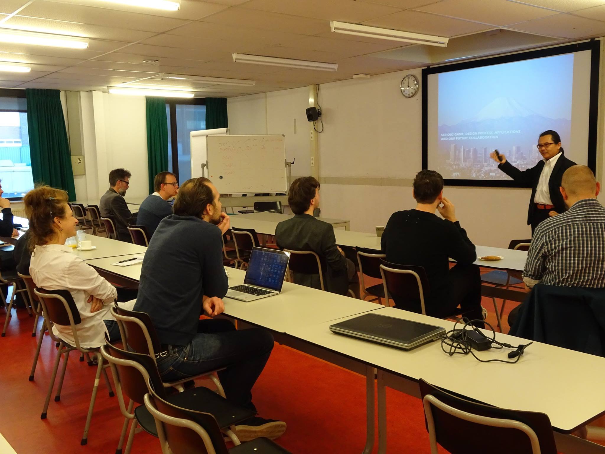 オランダ・ユトレヒト芸術大学に滞在中の古市先生が,帰国に先立ってゲーム&インタラクションの先生方に最終講義を行ってきました.ユトレヒト芸術大学の学生は,3年生の2学期間,約10人でカンパニーと呼ばれるチームを組んでシリアスゲームを開発します.そのままシリアスゲーム制作会社を起業する学生も多く,2015年末にはオランダのゲームソフト制作会社が455社まで急増しました.
