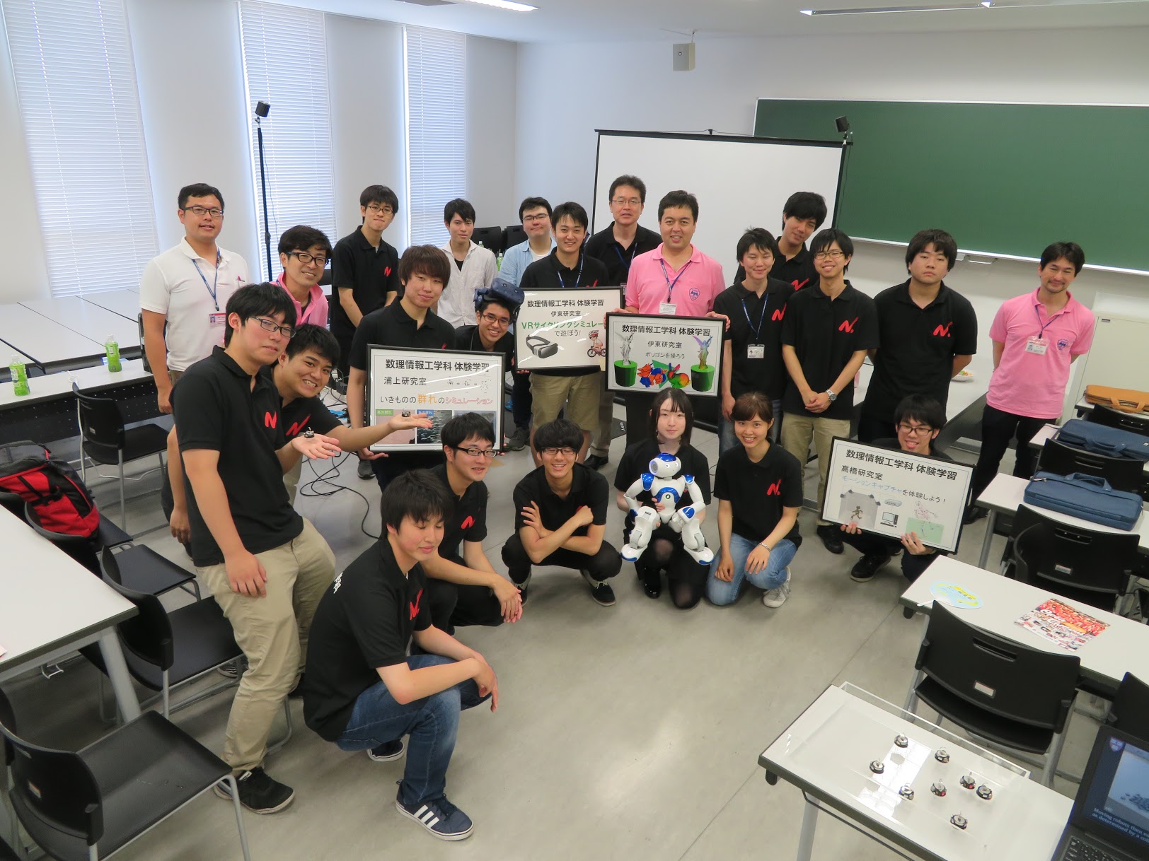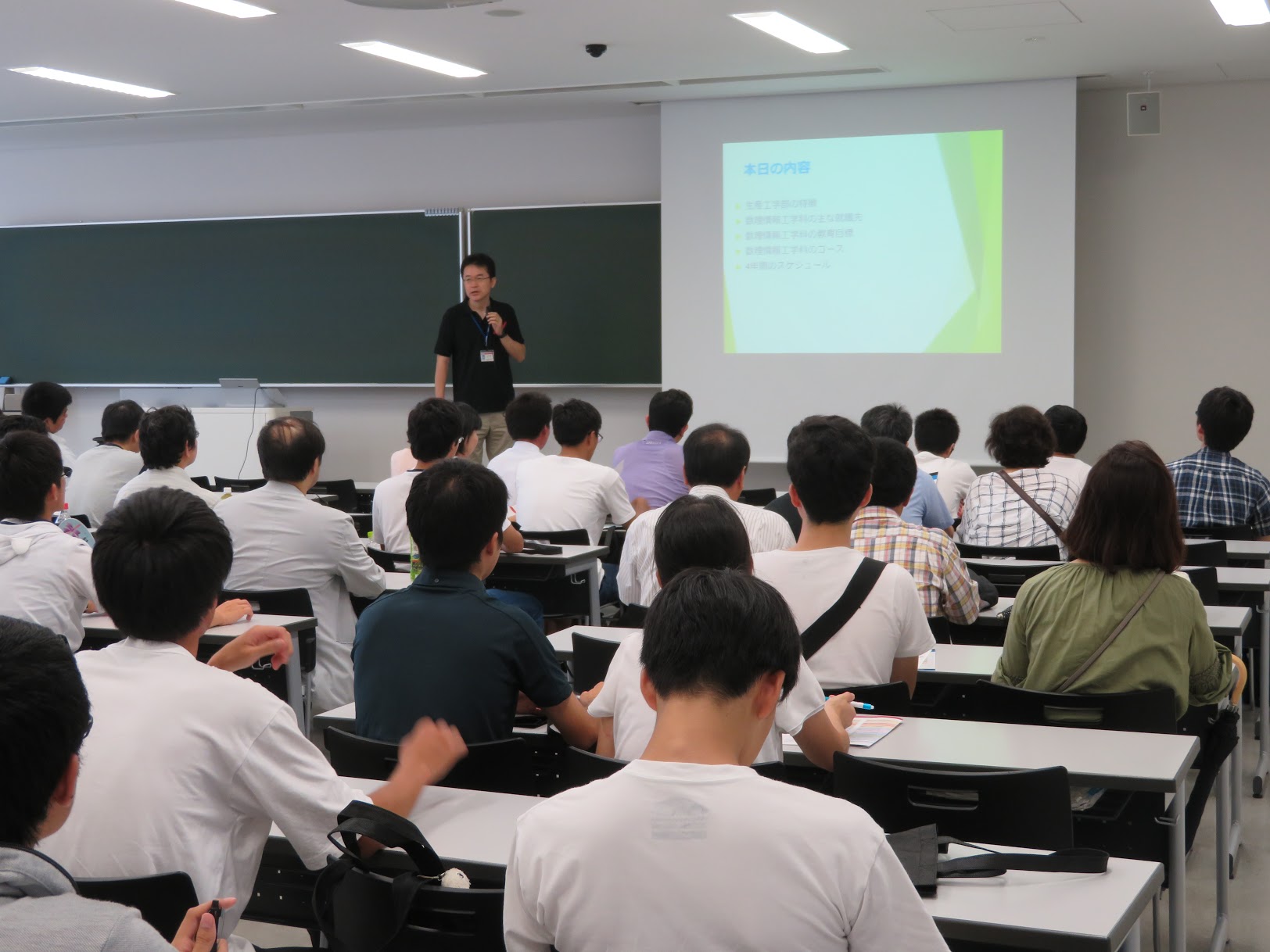 2018年度最初のオープンキャンパスを2018年7月15日(日)に実施し,多数の高校生及びご父母の皆様に説明会,模擬授業,体験コーナ等を通して数理情報工学科を知っていただきました.