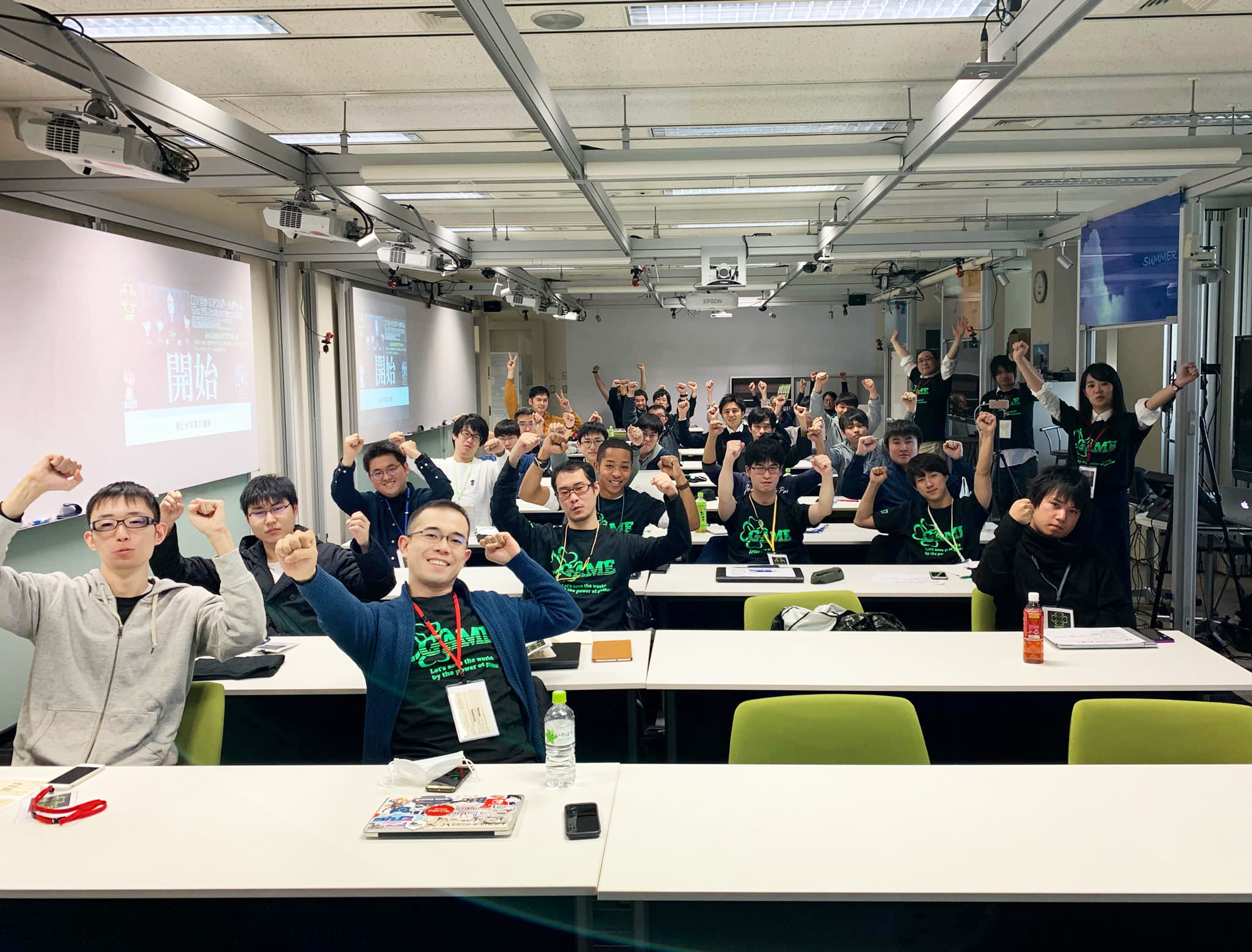 2018年12月9日(日),国立情報学研究所で古市教授と粟飯原助手が副実行委員長を務める第7回シリアスゲームジャムが開幕,本学の学生を含める多くの学生に加えて,プロのゲーム開発者を含む多くの会社員が集まり,3日間でシリアスゲームを制作するイベントが開幕しました.2日目の12月15日には海外の学生及びオランダのデザイナも合流してジャムは更に盛り上がります. 詳細はSQOOL.netの記事をご参照ください.また,制作中の様子についてはFacebookページで観ることができます.