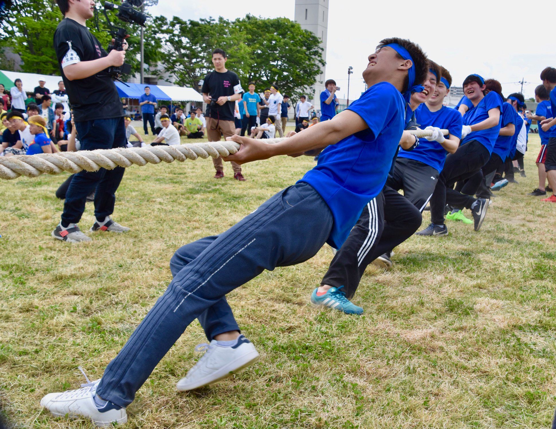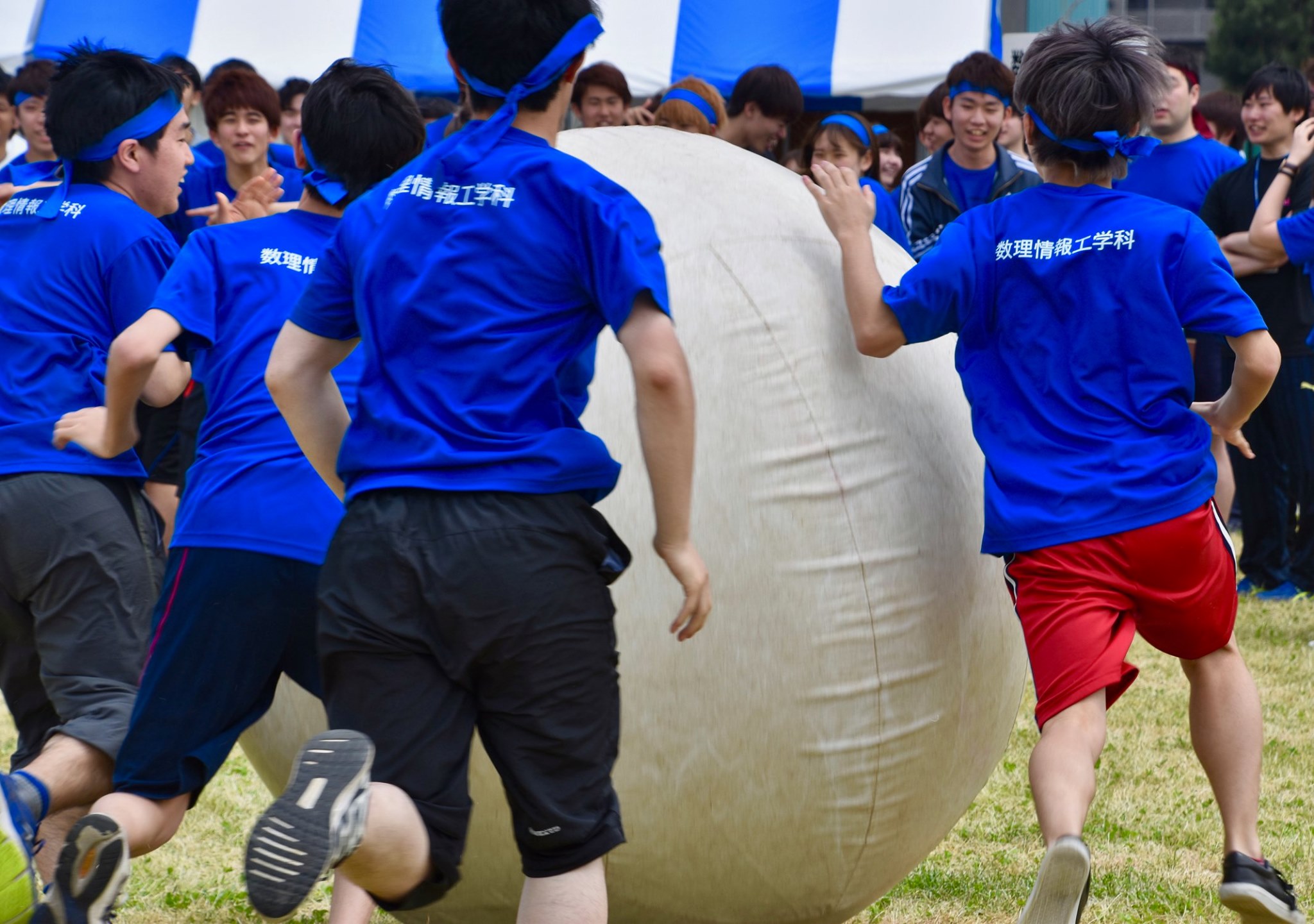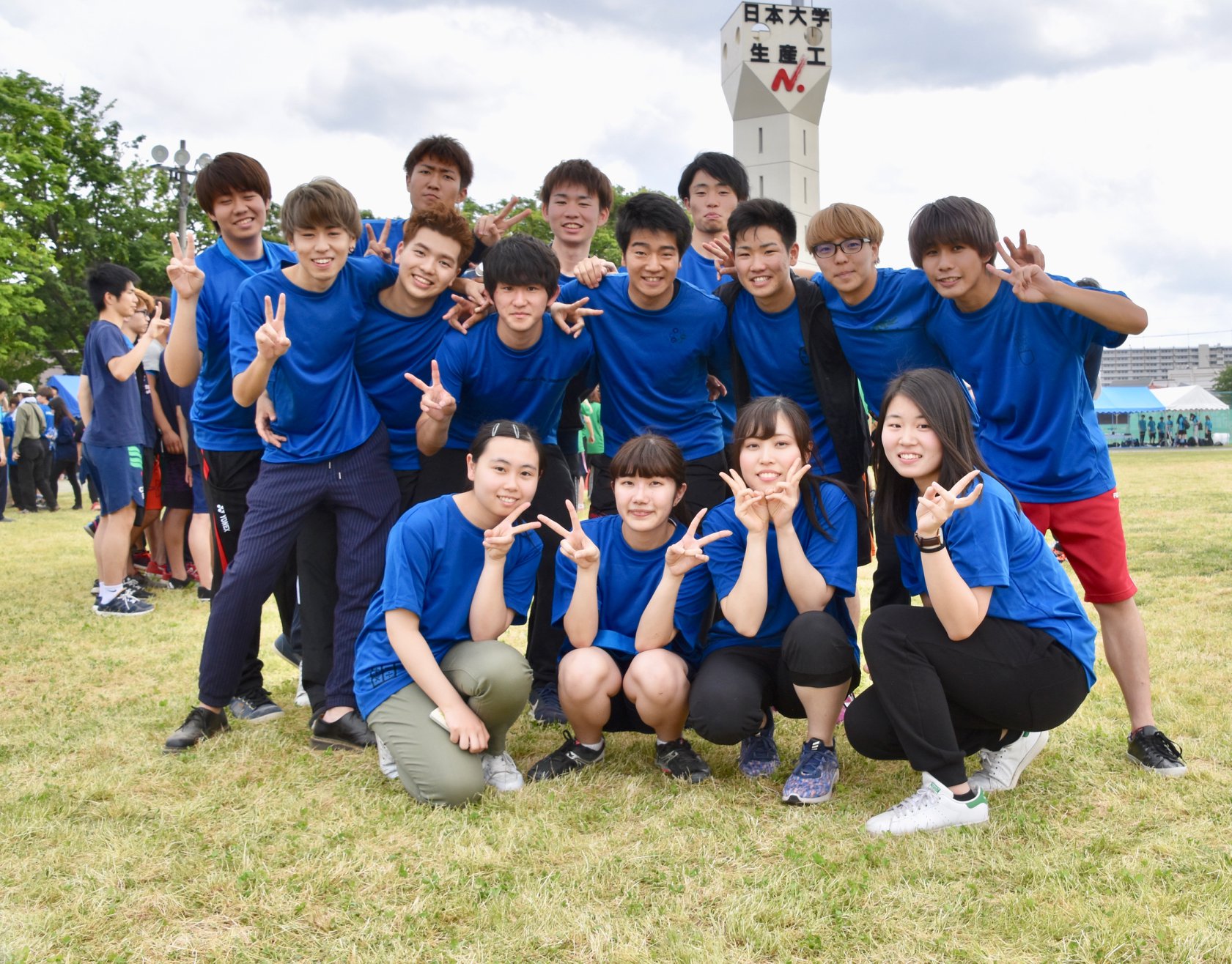 本日日本大学生産工学部ではスポーツ大会が行われ,午前中は学科別で新入生と教職員による各競技が行われました.数理情報工学科の1年生は健闘しましたが,9学科+教職員チーム中で第8位でした.しかし,自主創造の基礎1で各チームで作成したロゴを印刷した数理情報ブルーのオリジナルは,他のいずれの学科にも負けていませんでした.