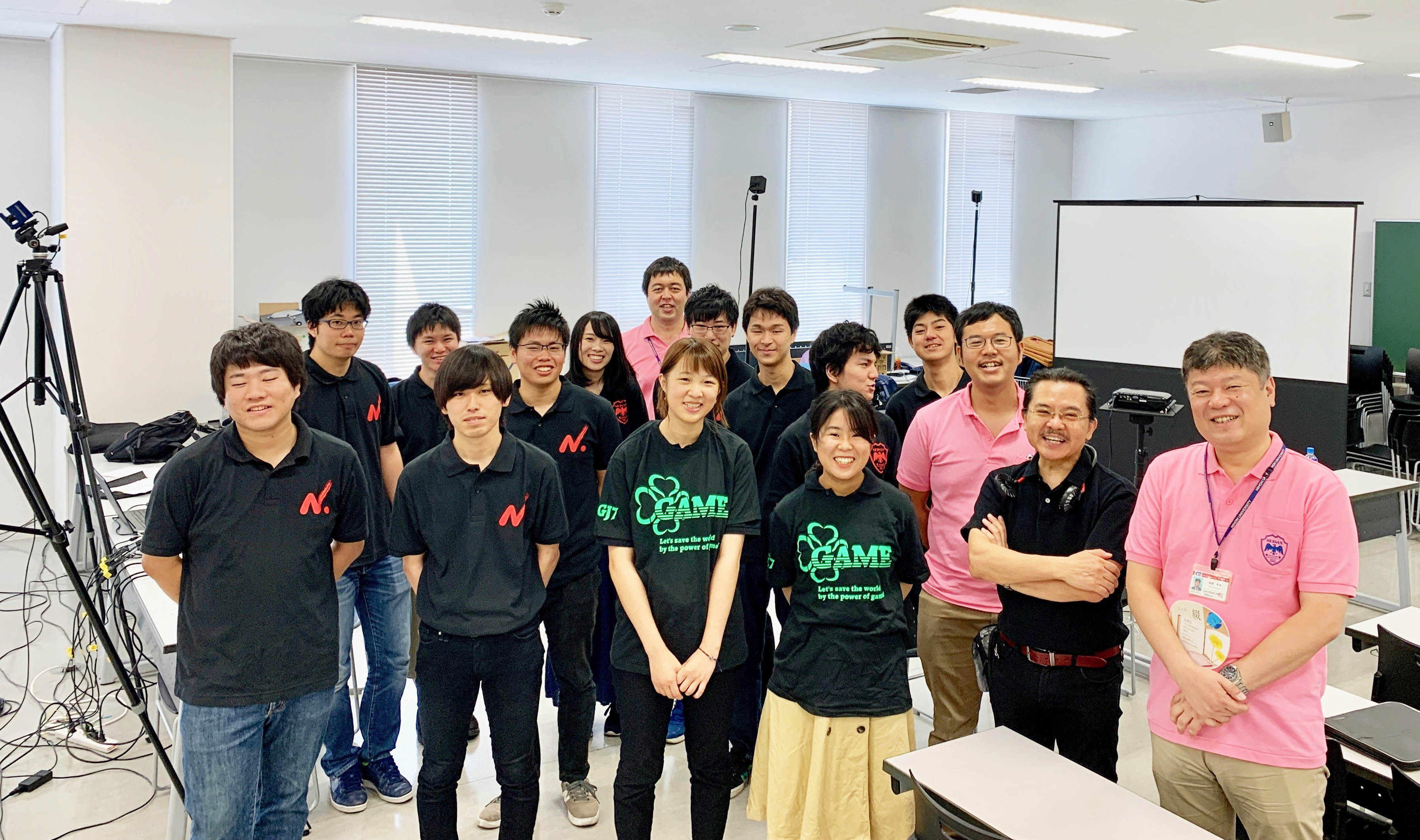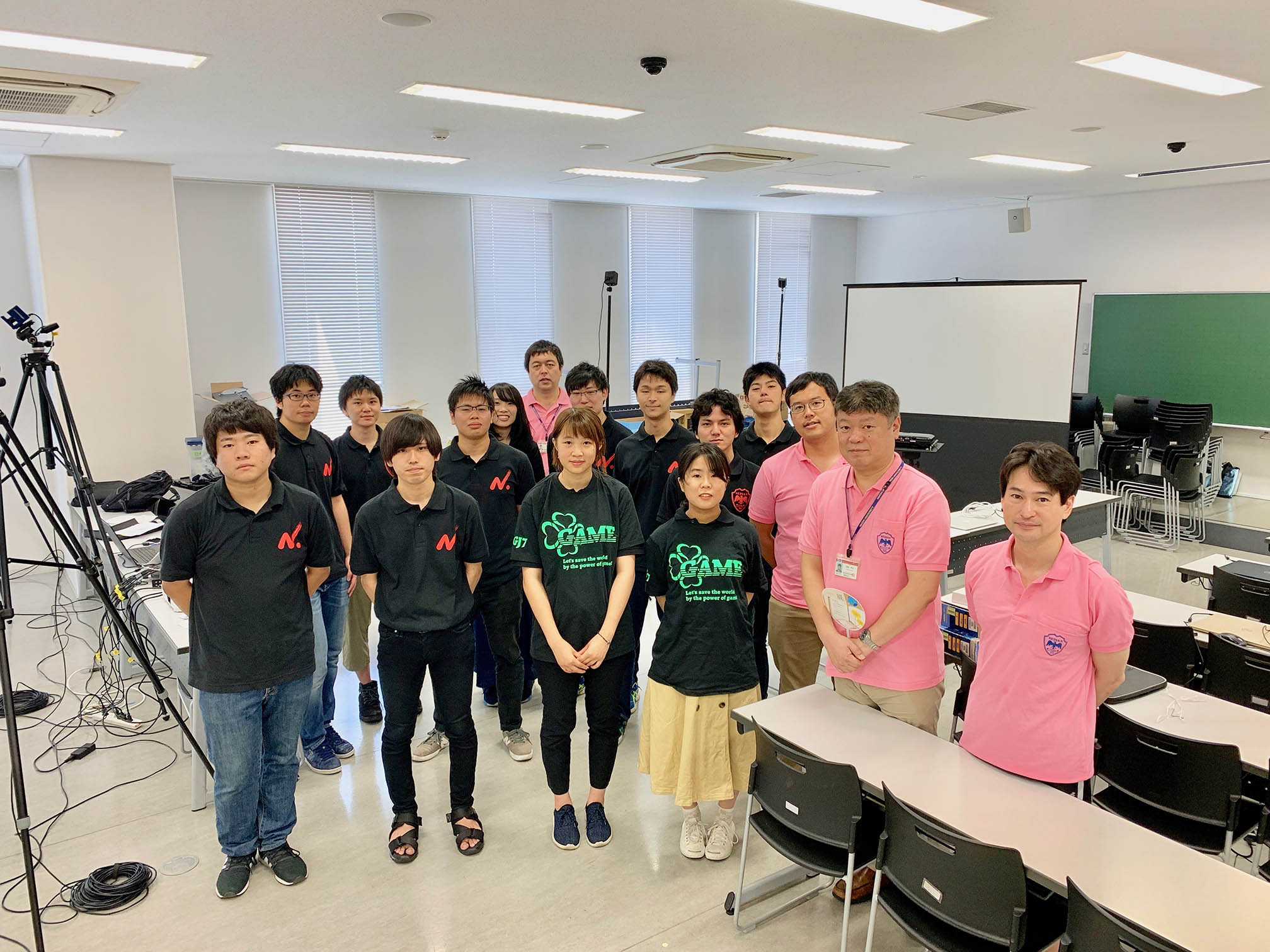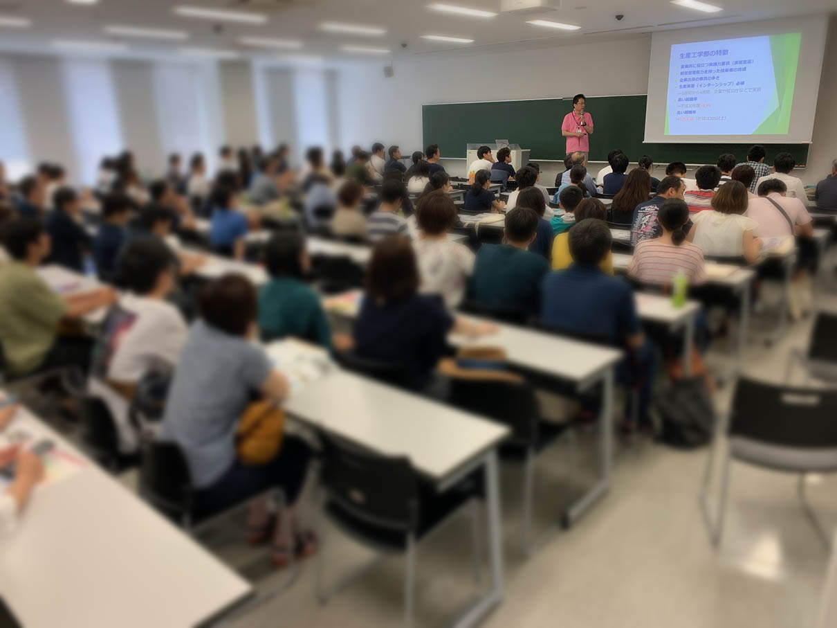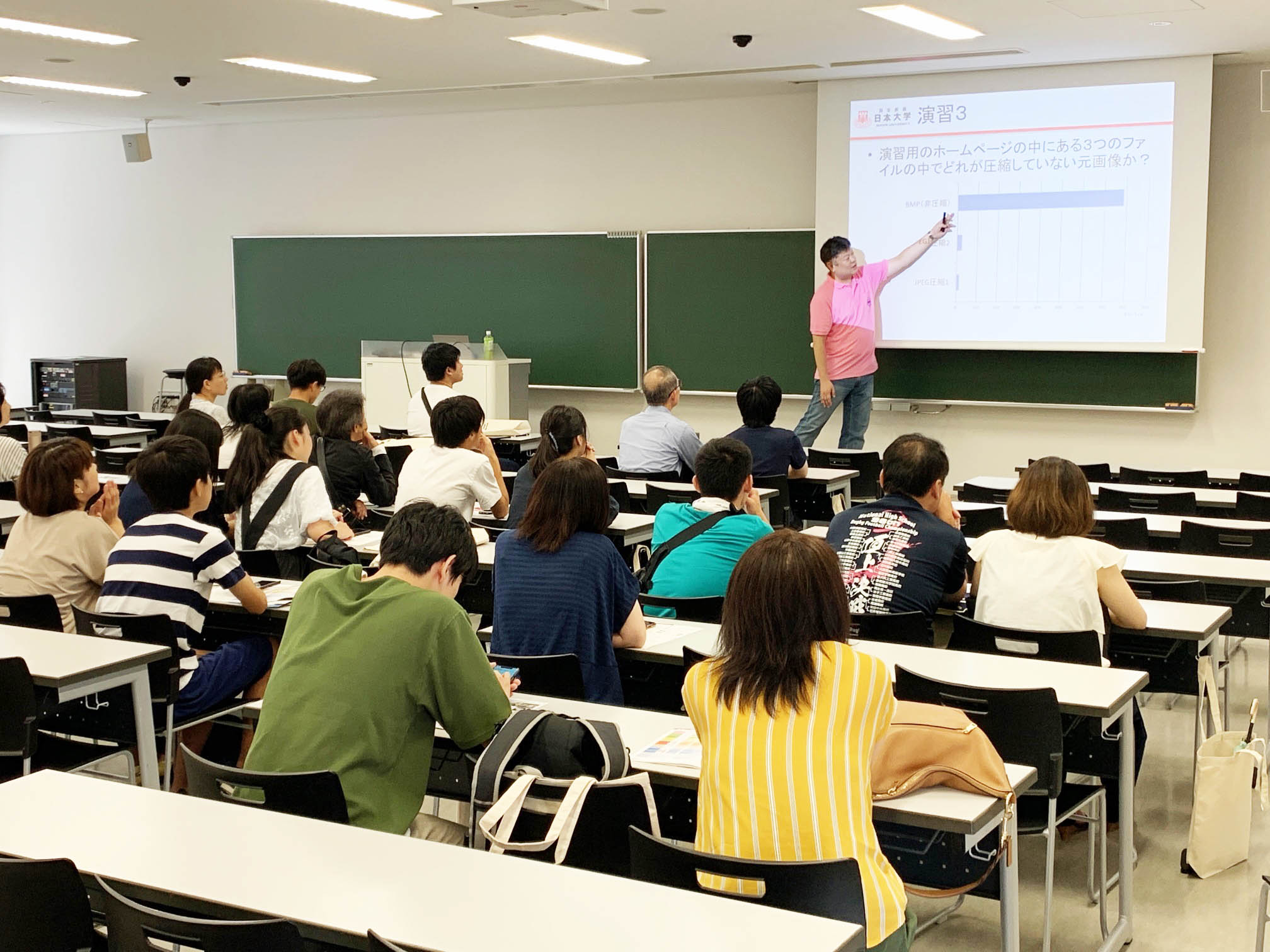本日(2019年8月4日)生産工学部では今年最後のオープンキャンパスを開催中で,数理情報工学科には多くの受験生の方が学生が開発したシステムを体験していただきました.午前中は中村先生による学科紹介の後,現在は 細川先生による「ストップウォッチのプログラミング体験」講義中です.今年最後のオープンキャンパスは,午後3時まで受験生の皆さんで賑わいました.