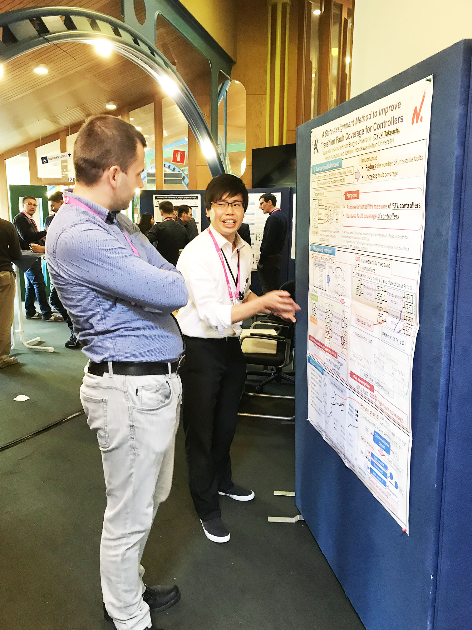国際会議32nd IEEE International Symposium on Defect and Fault Tolerance in VLSI and Nanotechnology Systems (DFT2019)が2019年10月2~4日にオランダ・ノールトウェイク(ESA-ESTEC)/デルフト(Delft University of Technology)で開催され,数理情報工学専攻の大学院博士前期課程2年の竹内勇希さん(細川研究室所属)の論文”A State Assignment Method to Improve Transition Fault Coverage for Controllers”がポスタセッションで採択され,発表しました.