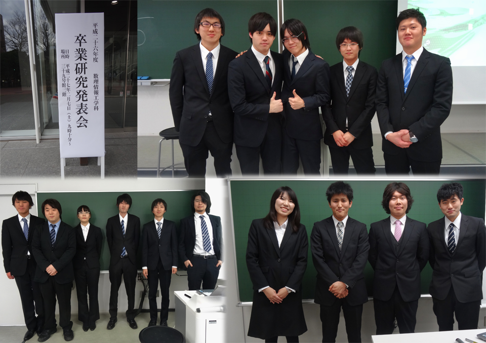 卒業研究発表会を2月7日(土)に行い,4年生がこの1年間取り組んだ研究成果を発表しました.各研究室の大学院生が多数後輩達の発表を聴講した他,4月から研究室への配属を決める2年生も多数聴講していたのが印象的でした.卒業判定の後,学位記授与式を3月25日に行います.