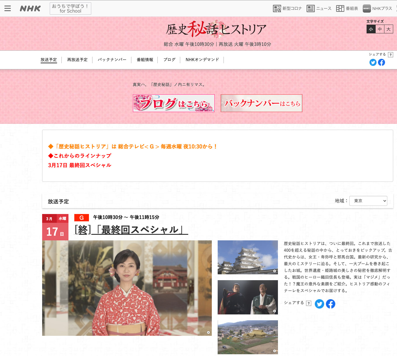 NHK総合「歴史秘話ヒストリア」最終回3月17日(水)22:30に古市先生が少しだけ登場します