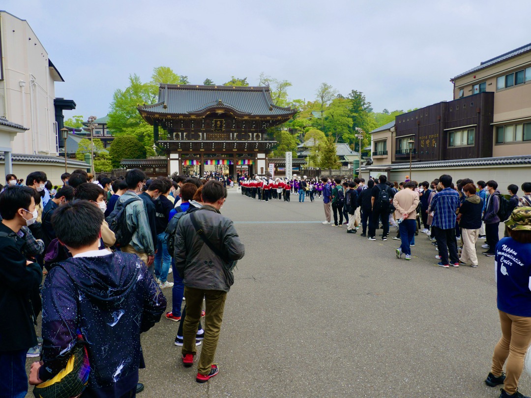 数理情報工学科では2022年4月23日(土)に1年生177名と教員とで成田山新勝寺へ新入生オリエンテーションに行ってきました.当日天候には大変恵まれ,4月だというのに最高気温は摂氏26度を超え,学生も教員も汗を流しながら新勝寺の境内をぐるっと廻ってきました.優勝チームの表彰は,2022年4月27日(水)の講義「自主創造の基礎」の中で行う予定です,お楽しみに.