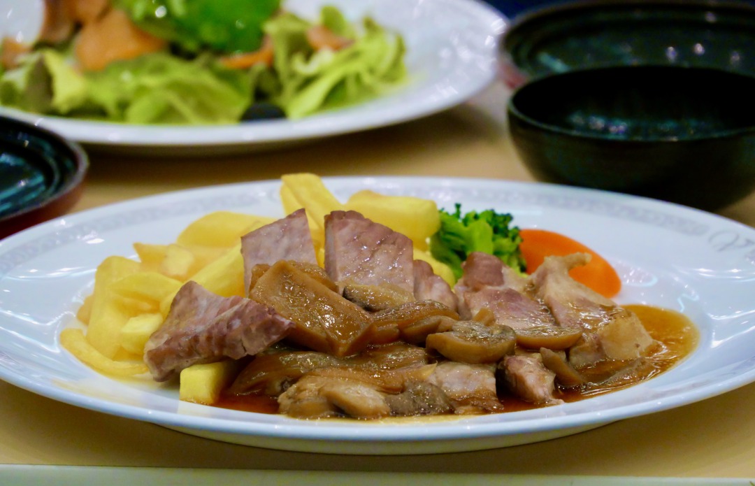 ホテルでの昼食はポークソテー,写真からわかる通り,バッチグーの美味しさでした. コロナ禍以前数理情報工学科ではこの時期に温泉への1泊旅行のオリエンテーションを行ってましたが,2020,2021年度を中止とした以降久しぶりの日帰りオリエンテーションは,学生同士のコミュニケーションを促進し仲間を作るという目的のためには十分なイベントでした.次は,5月に行われるスポーツ大会で更に数理情報工学科の連帯感を高めましょう!