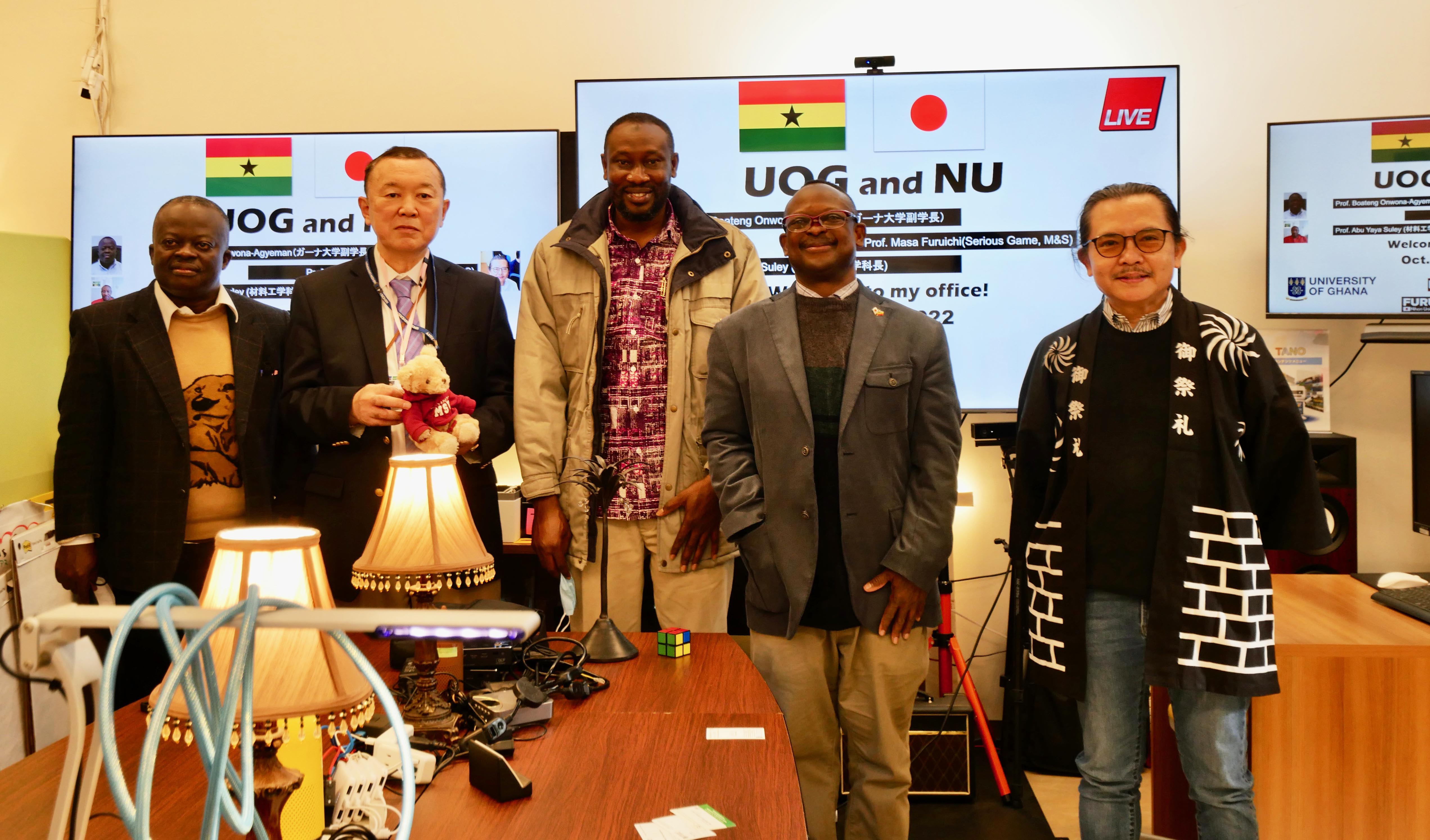 2022年10月26日,ガーナ大学副学長のAgyeman先生らが数理情報工学科を訪問され,モデリング&シミュレーションとシリアスゲームに関する情報を交換を行いました. 日本でガーナ大学は野口英世博士が研究された場所として有名で. 野口英世記念研究所も学内に位置しています.