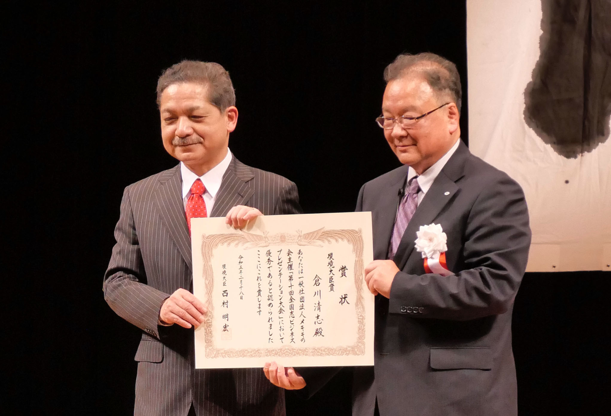 大学院博士後期課程の倉川清志君が2023年2月19日(日)に日本橋公会堂で開催された「全国志ビジネスプレゼンテーション大会」に出場し,現在研究で実施している内容等を中核とする新しいビジネスについて発表し,優勝・環境大臣賞を受賞しました.倉川清志氏は現在博士後期課程の3年生で,2023年9月の修了を目指している学生ですが,同時に(株)東京技術計算コンサルタントの代表取締役でもあります.日本大学大学院生産工学研究科の数理情報工学専攻には,在職のまま研究室で研究をすすめる社会人学生が多数在籍し,自ら会社で行っているビジネスを,学術界においても評価を高めるよう,教員や学生とともに研究を進めています.