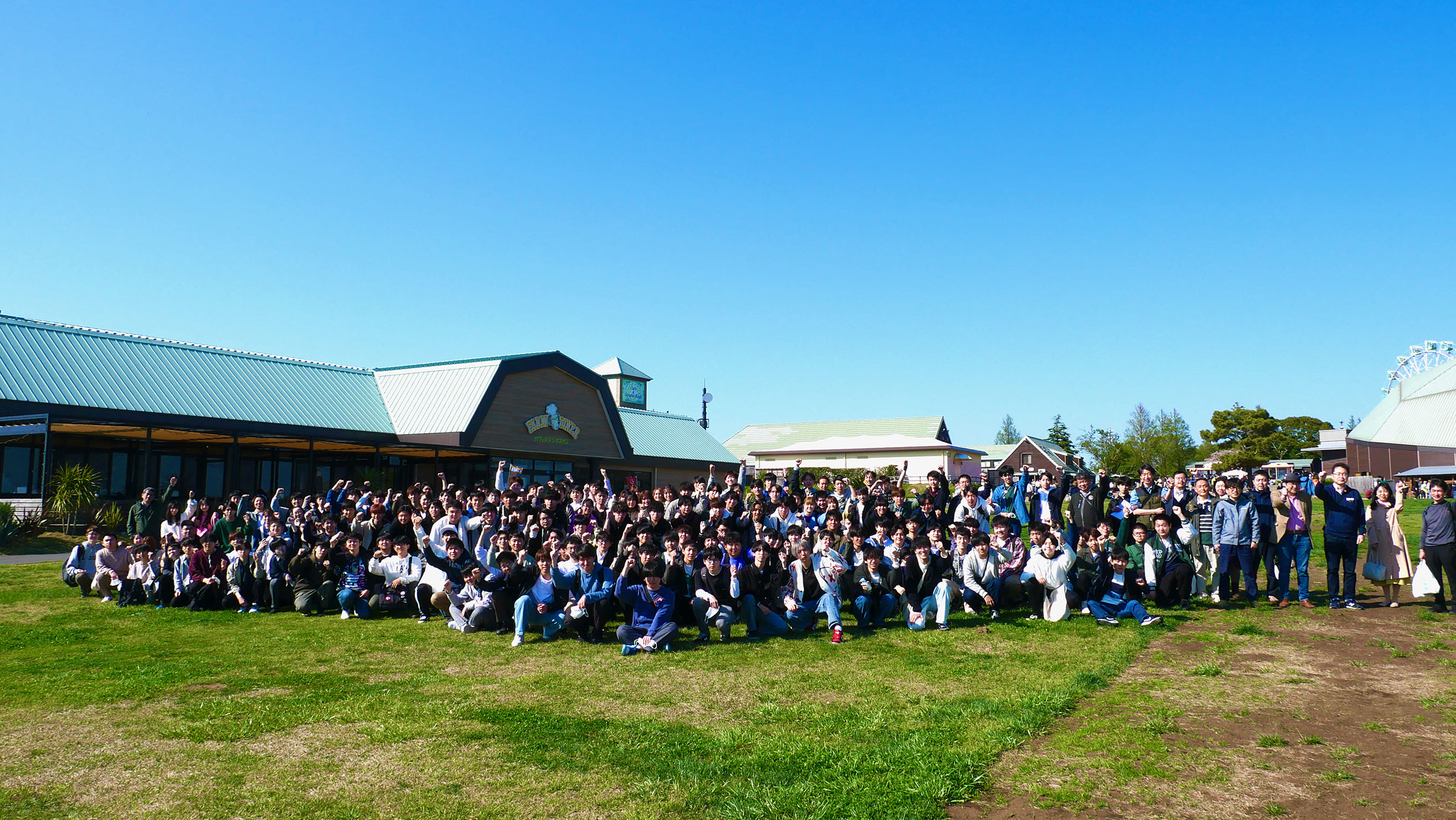 生産工学部新学期の恒例行事は,新入生は各学科の教員とオリエンテーションに行くことです.今年の行き先はマザー牧場,2023年4月8日に行われた入学式の翌日,4月9日土曜日に教員と新入生とで10台のバスを連ねて日帰りで行ってきました.今年の一年生が全員で集合すると,こんな感じです!これから4年間,皆で大学生活を有意義に過ごしましょう!