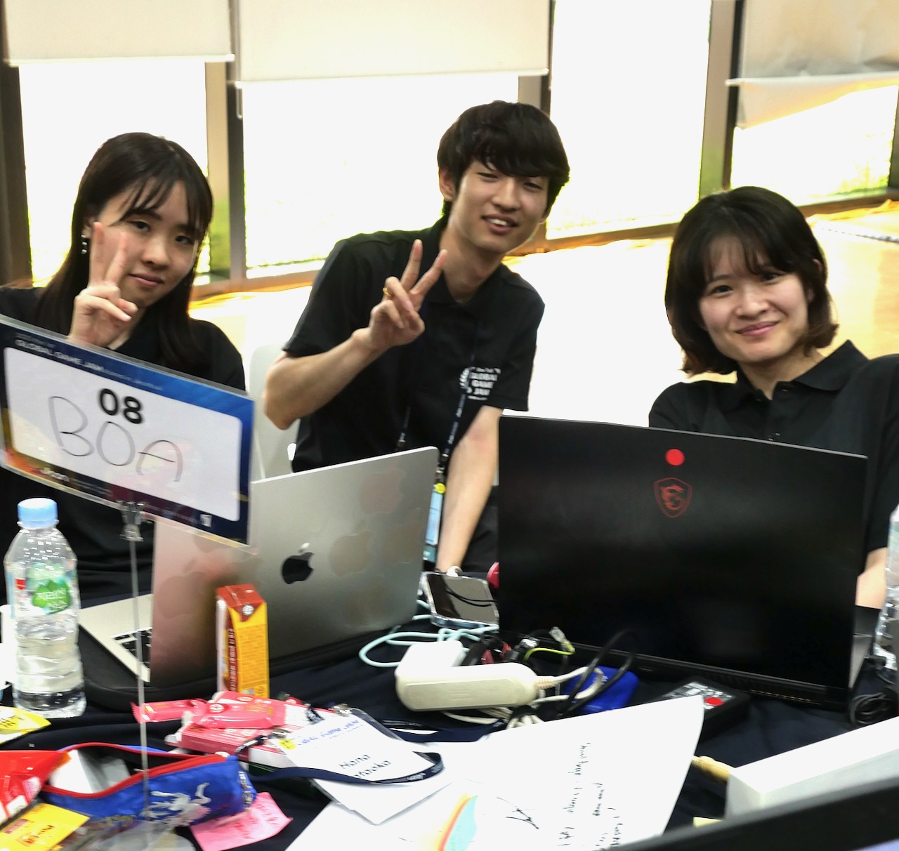 48時間の間にゲームジャムでは様々なドラマがありました.誕生日を迎えた学生へはサプライズによるバースデーパーティ,ロッテリー型のゲームを用いたいわゆるビンゴバーティ,賞品の種類と数が多くてとてもビックリしました.また,今年定年を迎える教員にまでサプライズで退職パーティをしてくれたのにはビックリしました.その他チーム編成時のトラブル等もありましたが,その他,おそらく参加者の全員120通りのドラマがあったことでしょう.