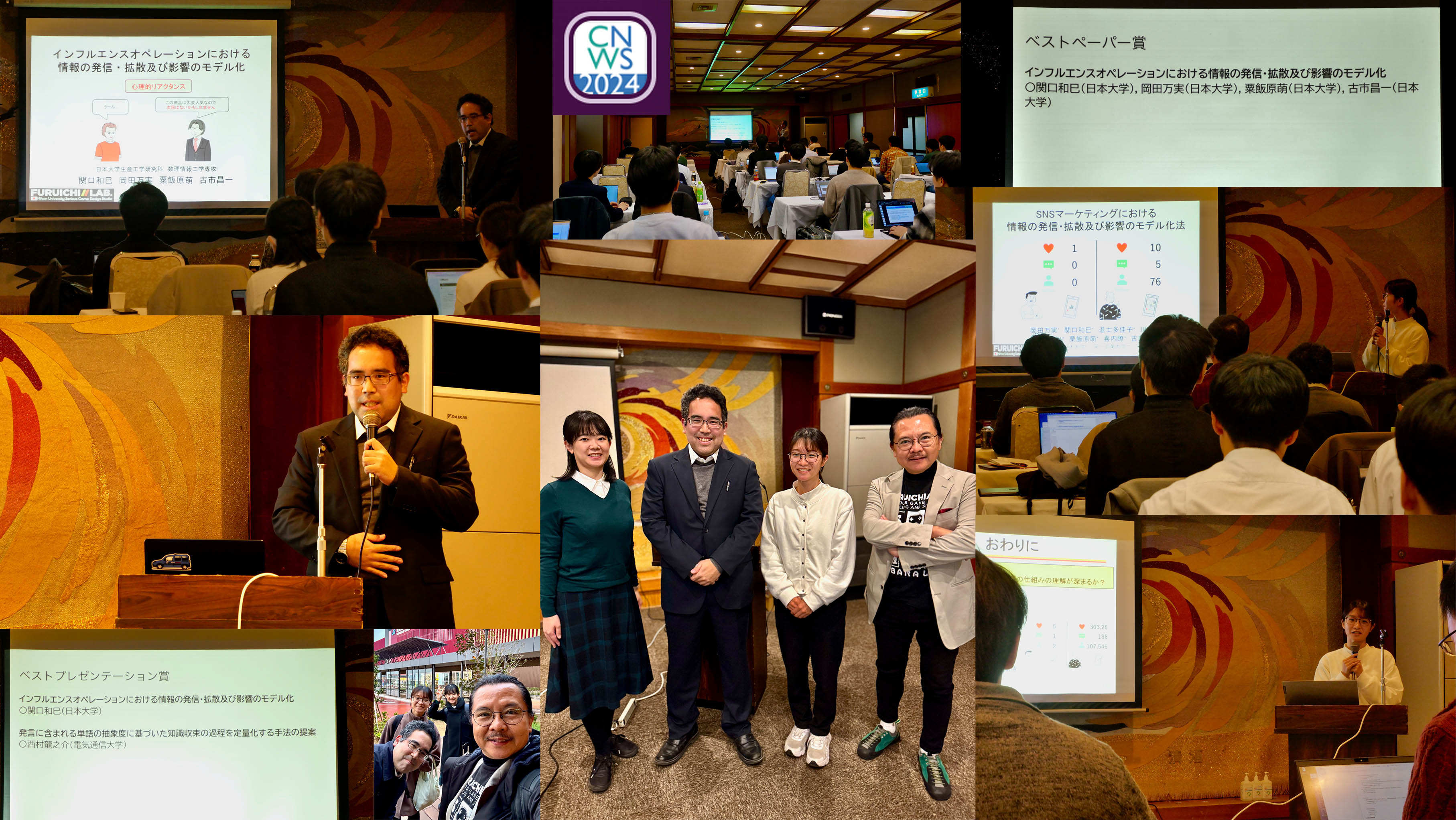 査読付きセッションで関口和巳君が発表したのは「インフルエンスオペレーションにおける情報の発信・拡散及び影響のモデル化」(関口和巳(日本大学),岡田万実(日本大学),粟飯原萌(日本大学),古市昌一(日本大学)).近年SNS(ソーシャルメディア)上では短期間で多くの人に対して考え方や信念の更新に影響を与えることを目的としたインフルエンスオペレーションが行われており,それが社会問題の一つとなってますが,その対処能力向上を目的としてこれまで約1年半行ってきた成果をまとめたものです.