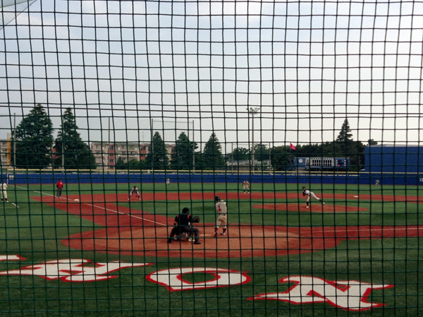 日本大学本部野球部の主将に本学科4年の石田君が就任しました.写真は2014年9月6日(土曜日)に行われた国士舘戦の様子で,背番号1の石田君が打席で活躍している様子です.当日は残念ながら延長戦の末負けましたが,次の試合に向けて更なる練習に励んでます.皆で応援しましょう![/dropcap]