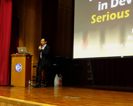 数理情報工学科と学術協定を本年締結した台湾の中国科技大で2013年6月6日に開催された国際会議ITAC2013に古市先生が招待講演者として招かれ,"How to Succeed in Serious Game Development"というタイトルで,シリアスゲームの構築法とこれに基づいて学生が開発したシリアスゲームの数々を紹介しました.当日中国科技大では卒業研究作品展をやっており,最後は学生達の卒業写真撮影に交じって一緒に写真を撮ってもらいました.