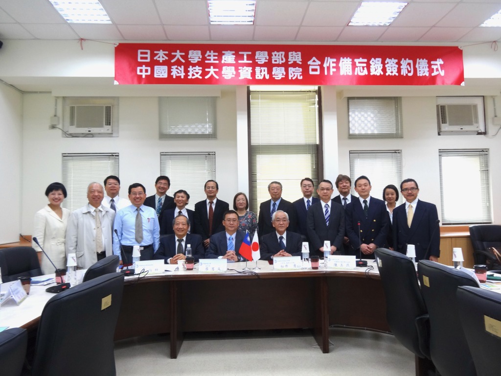 湾の中國科技大學と日本大学生産工学部数理情報工学科は,2013年3月19日に学術交流協定に調印し,今後両校の間では交換留学を始め教員の相互研究交流を行うこととなりました.調印式には松井学部長を始め,数理情報工学科からは細川教授,角田教授及び古市教授が参加し,Department of Multi-media Design等を見学いたしました.今後の研究交流や交換留学生による交流等が期待されます.