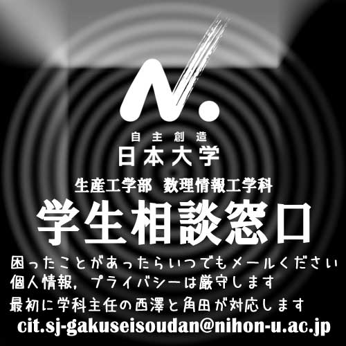 2015年4月4日に実施したガイダンスで学生の皆さんへお伝えした通り,今年度より学生相談窓口【メール版】の運用を開始致します.相談内容は問いません,ご活用ください.