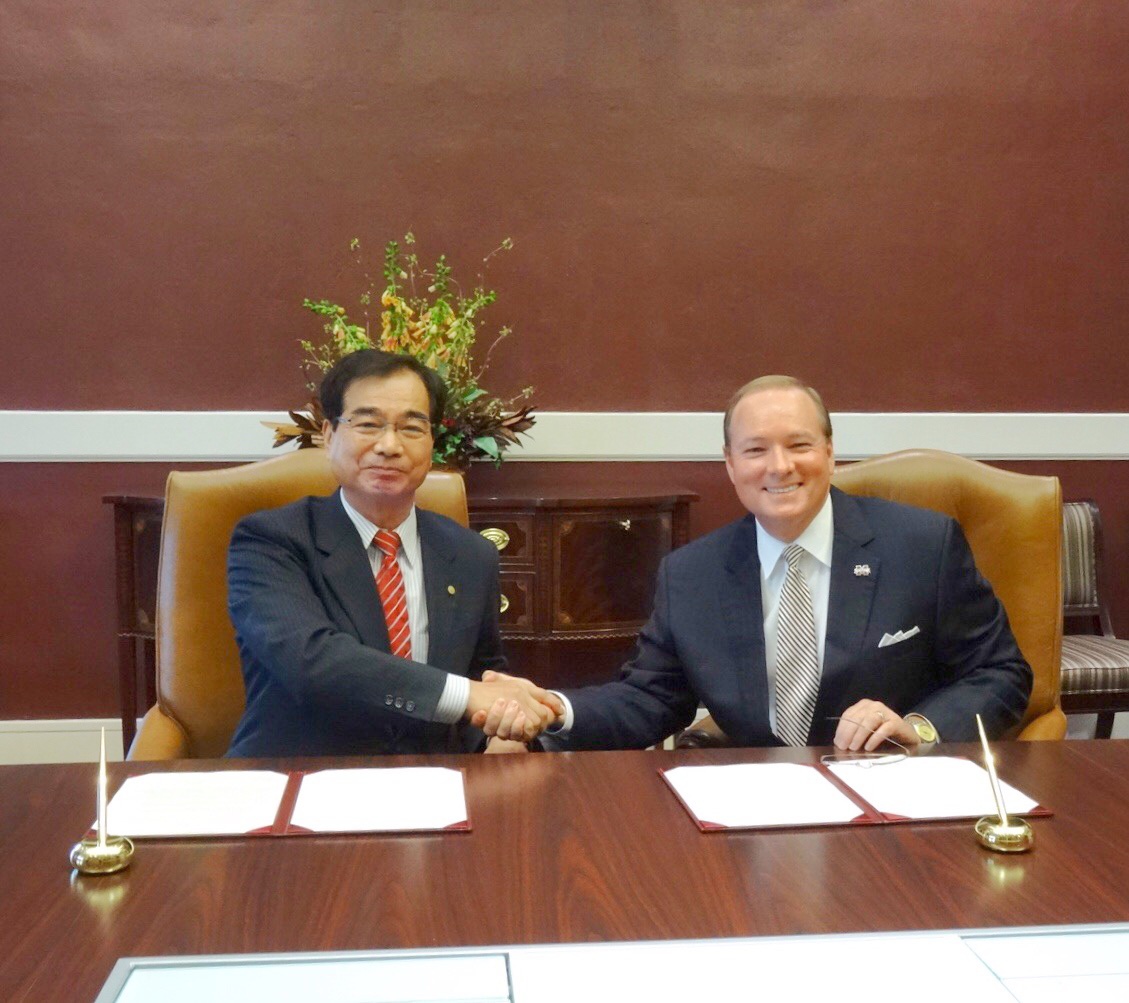 2015年6月23日(火),米国ミシシッピ州スタークビルに所在するミシシッピ州立大学(MSU)で,日本大学生産工学部とミシシッピ州立大学間の教育及び研究に関する覚書(MOU)の調印式が行われ,落合学部長を団長とする訪問団の一人として古市先生が調印式に参加しました.本覚書の調印により,今度両大学間での研究者及び学生の交流が促進します.学生の皆さんにとっては,留学先の一つとして考えることが可能となります.