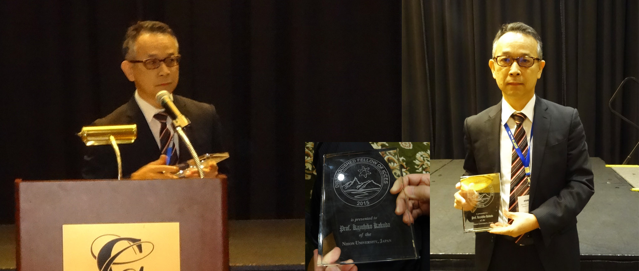 23日のプレナリーセッションでは授賞式が行われ,角田先生はこれまでの粒子法に関する研究が評価され,ICCES Distinguished Fellowsの賞を受賞されました.