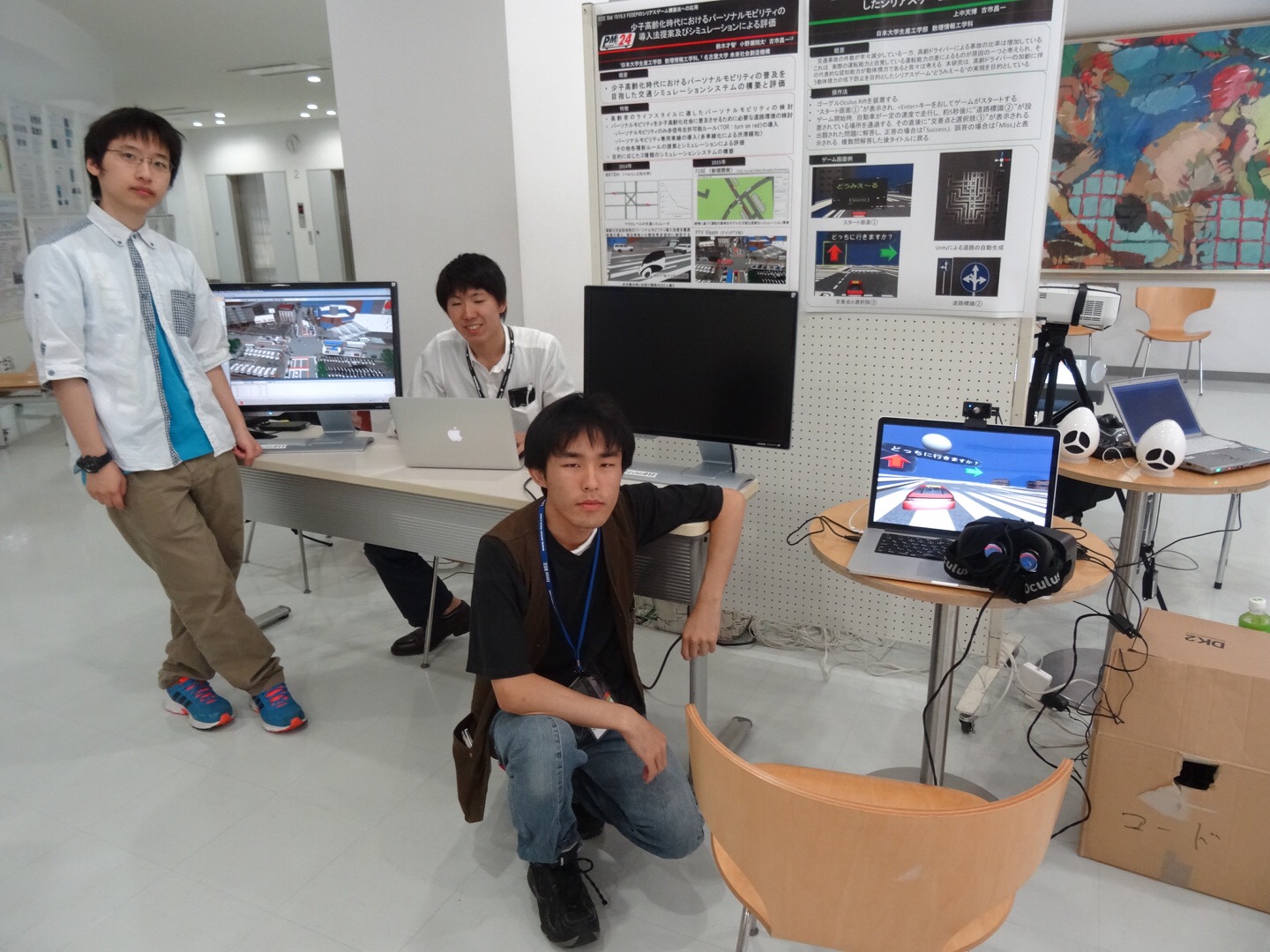 2015年8月1日(土),日本デジタルゲーム学会主催のDiGRA Japan 2015 夏季研究発表大会 が生産工学部で開催され,数理情報工学科の学生多数が日頃の研究成果を3件の講演及びインタラクティブセッションで発表しました.発表タイトルは”IEEE Std 1516.3 FEDEPのシリアスゲーム構築法への応用(古市先生他)”,”加齢に伴う動体視力の低下防止を目的としたシリアスゲームの開発(上中君他)”,”シリアスゲーム型学習用教材構築法の提案及び開発の取り組み(粟飯原さん他)”の3件で,特に粟飯原さんのインタラクティブセッションでの発表は学生大会奨励賞を受賞されました!更に,メディアデザインコースの学生多数が聴講し,他大学の学生及びプロのゲーム開発者の皆さんとの交流を楽しみました.